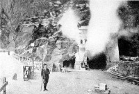 Nagyobb baj volt a hőforrásokkal, melyek gyakran előtörtek s néha hónapokig feltartották a munkát. Egyik ilyen forrásból például naponta 100,000 köbméter forróvíz ömlött ki. Két ízben huzamosabb ideig késleltette a fúrást a nagyobbára olasz munkások sztrájkja is.
