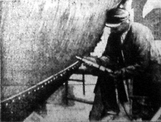 Az előbbiekből azonban a süritett levegőnek a kalapács, amely mint kézi szerszám süritett levegő hatása alatt mint gép dolgozik. Ennek alkalmazását az alsó képünkön mutatjuk be.